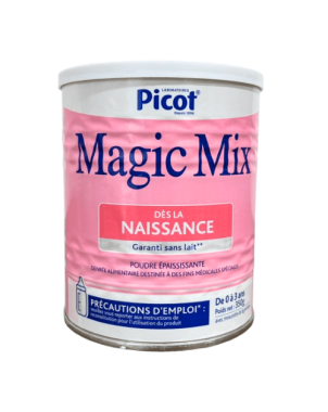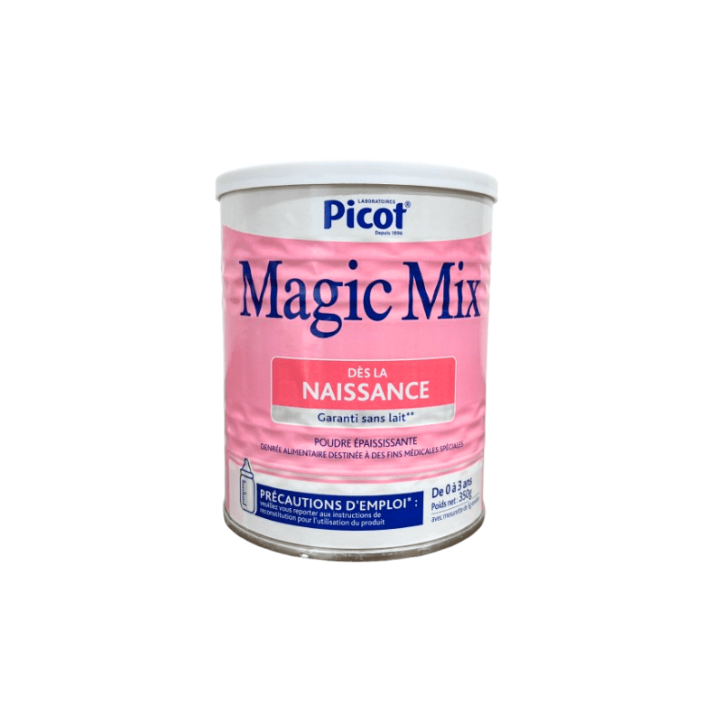 La poudre épaississante Magic Mix de PICOT est spécialement conçue pour épaissir les préparations destinées aux enfants de 0 à 3 ans souffrant de troubles de la déglutition ou de régurgitations modérées à sévères. Utilisable dès la naissance, elle convient à un usage pédiatrique, notamment au biberon, sans modifier la couleur ni le goût des préparations.