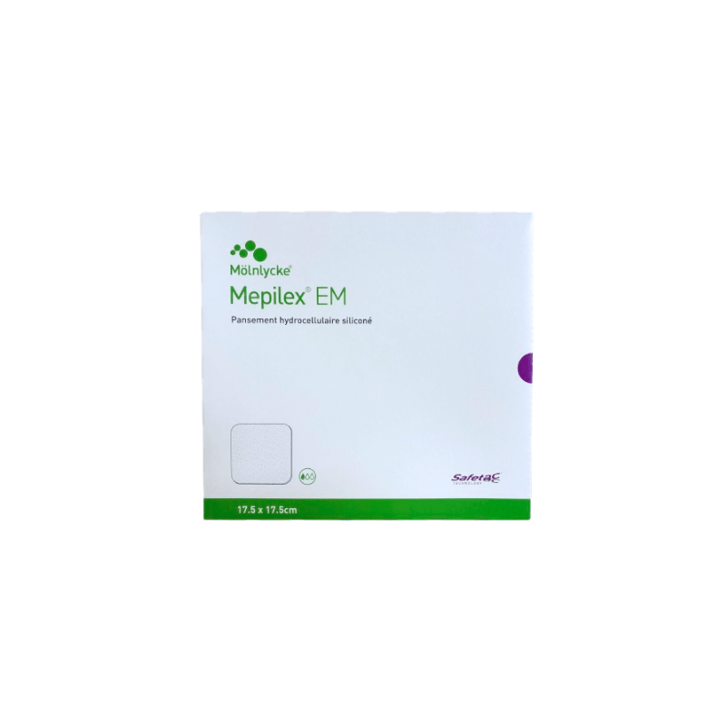 Les pansements Mepilex EM sont hydrocellulaires et siliconés, ils servent à traiter des plaies faiblement ou non exsudatives en phase de bourgeonnement ou d’épidermisation, comme les brûlures d’épaisseur partielle, les ulcères de jambe ou de pied, les escarres, ou encore les inflammations cutanées émanant d’une radiothérapie.
